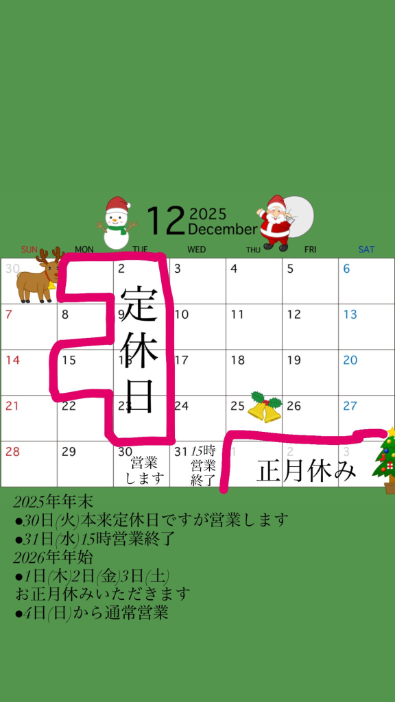 ⚫︎30日(火)本来定休日ですが年末なので営業日とさせていただきます